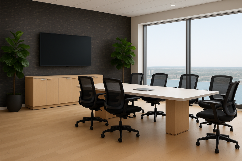 - Ergonomic seating for lasting comfort and a professional, polished meeting environment.