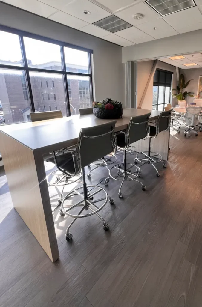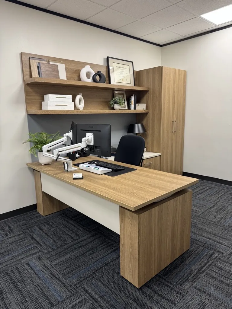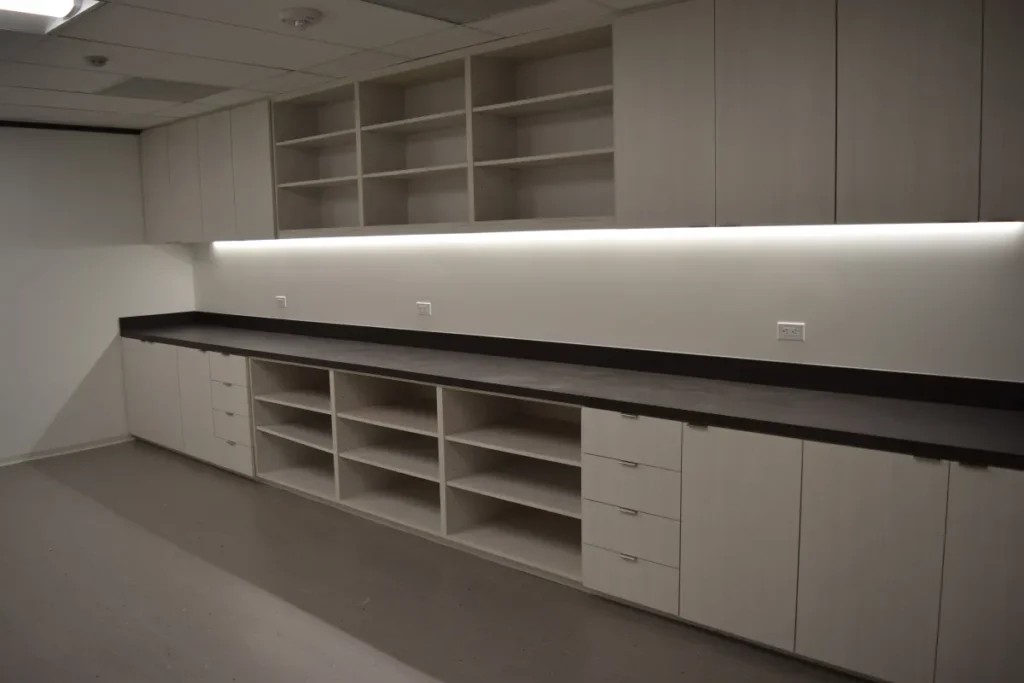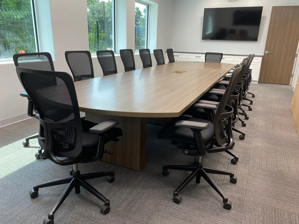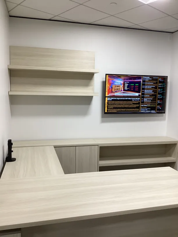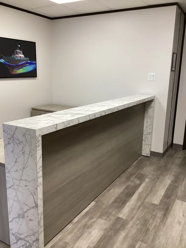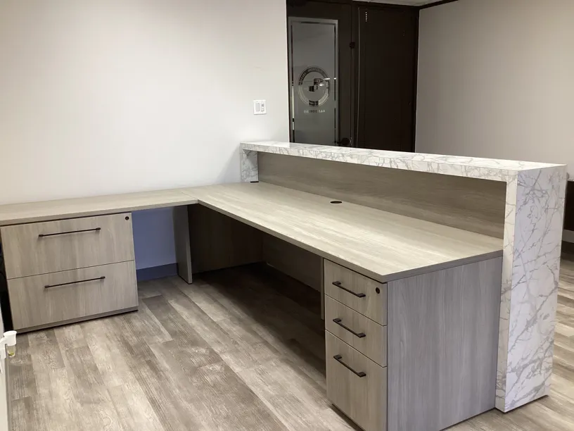 “We had an awkward space to fill and decided on a custom 20' credenza with a stone top and veneer doors to match our office doors. Jason guided us through the selection process, coordinating with manufacturers to ensure a perfect match. The installation team handled the stair carry flawlessly, and the end result is exactly what we envisioned.”