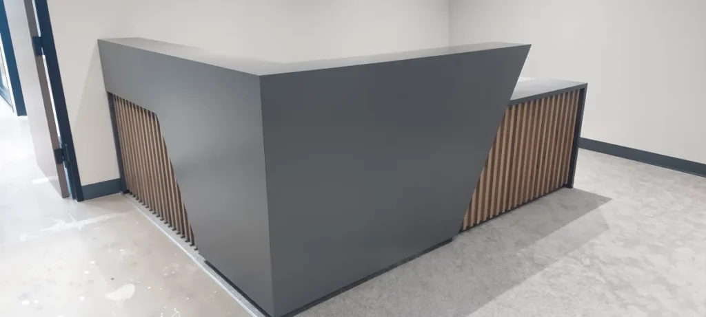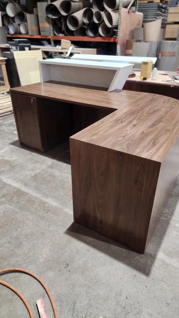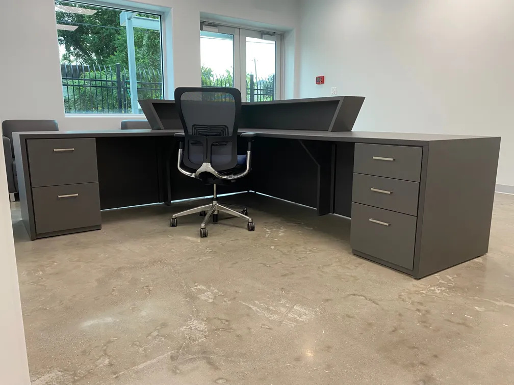 With OFC’s CONNECT line, you’ll partner with your OFC sales representative to design your ideal workspaces—custom desks, storage solutions, conference tables, and reception areas—tailored to your space and brand. Our in-house woodshop then builds each piece to exact specifications using your selected laminates, sizes, hardware, and finishes, bringing your vision to life with precision and care. Built locally, CONNECT delivers superior quality control and faster turnaround than traditional factory-built furniture.