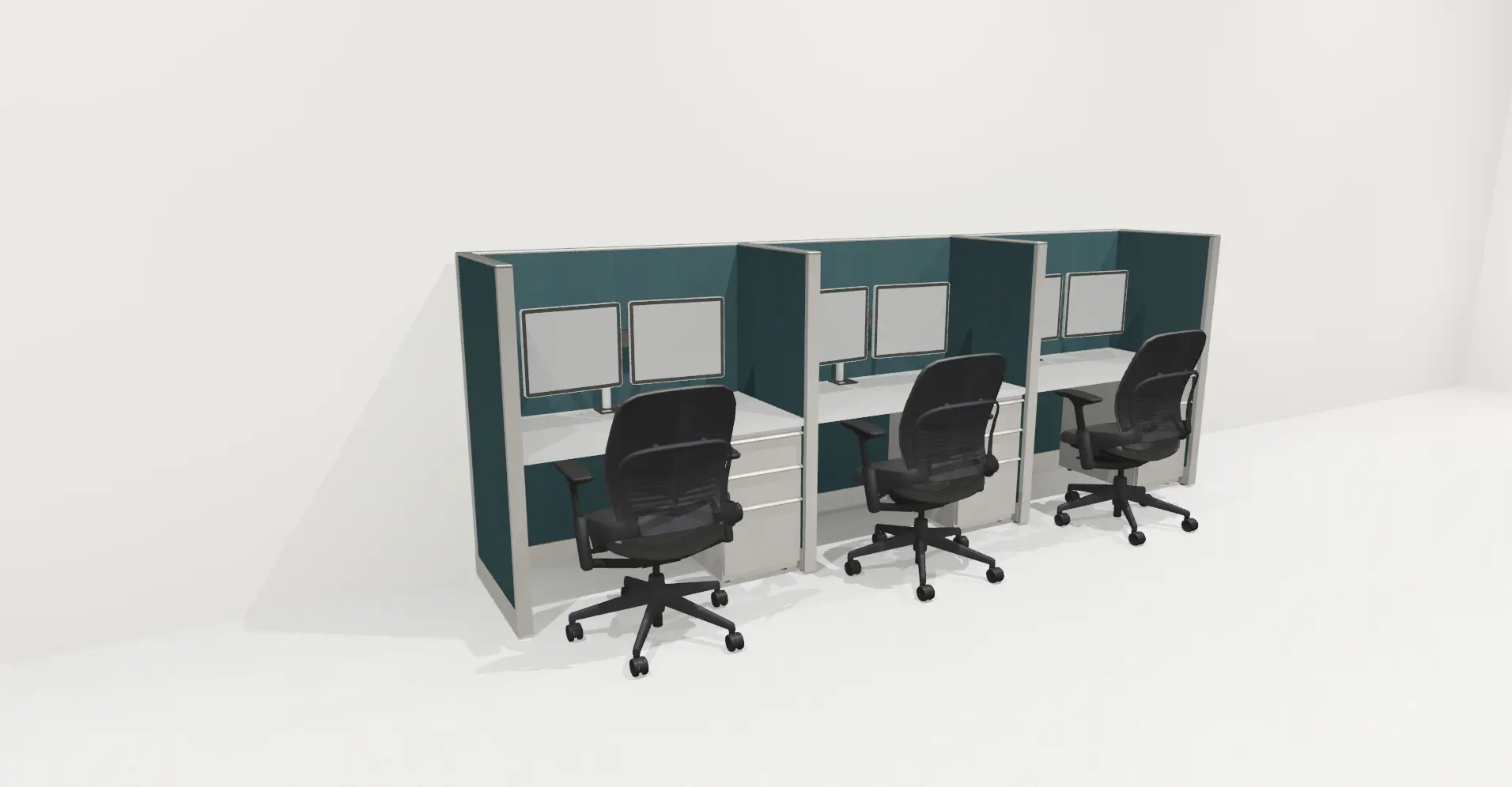 The 4’x2’ call station provides a functional, ergonomic workspace designed for high-density environments such as call centers, customer service hubs, and technical support teams. It’s ideal for phone-based agents, support staff, or anyone needing focused yet connected workstations. Mid-height panels define personal space, reduce noise and distractions, and maintain a bright, collaborative atmosphere. Optional sit-stand desks and customizable finishes complete the professional, efficient look.