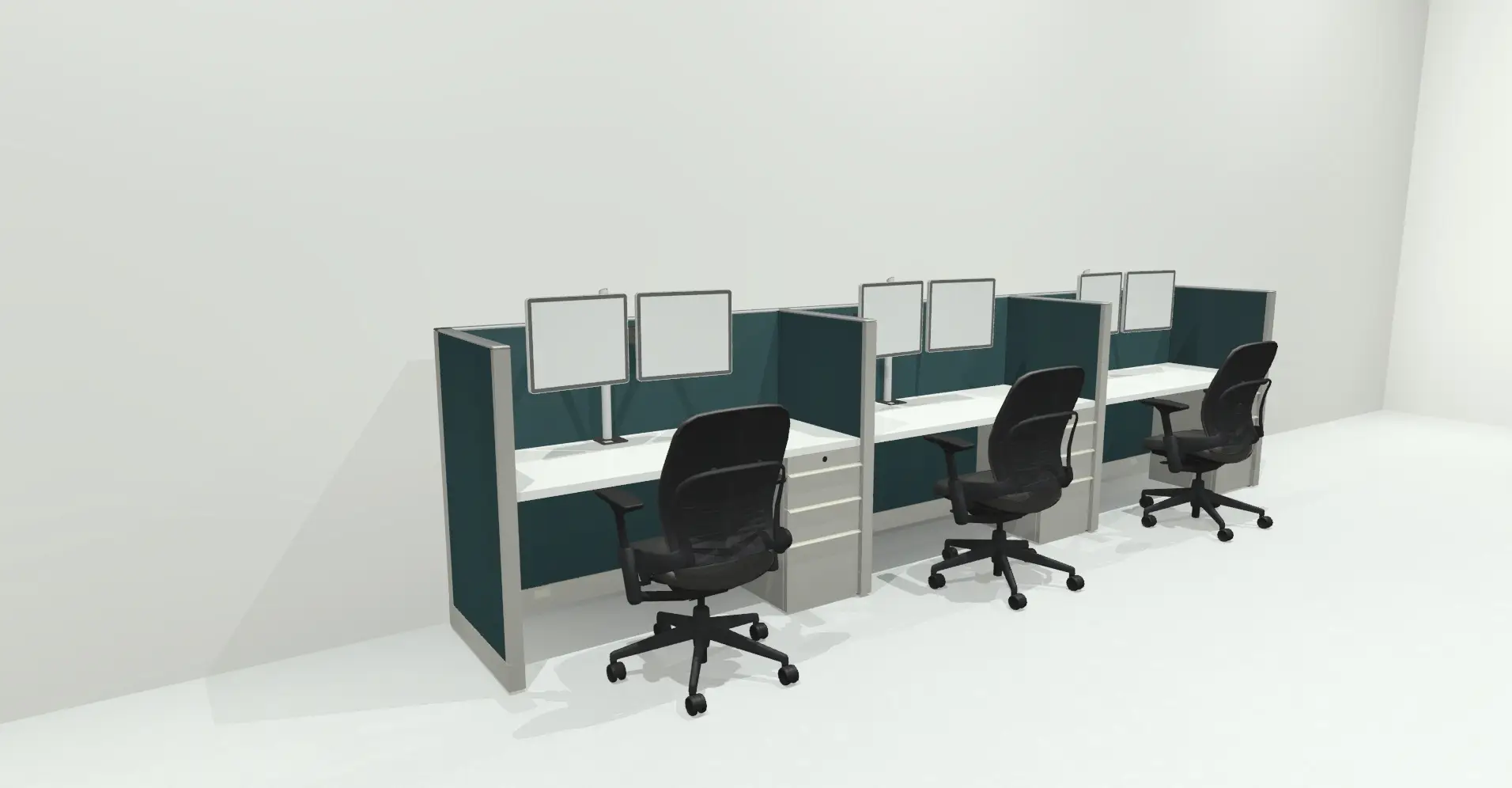 *Renderings are a generic representation of panel, worksurface, and accessory finishes. Clients can select fabric, laminate, and accessories from our wide range of options during workstation configuration.