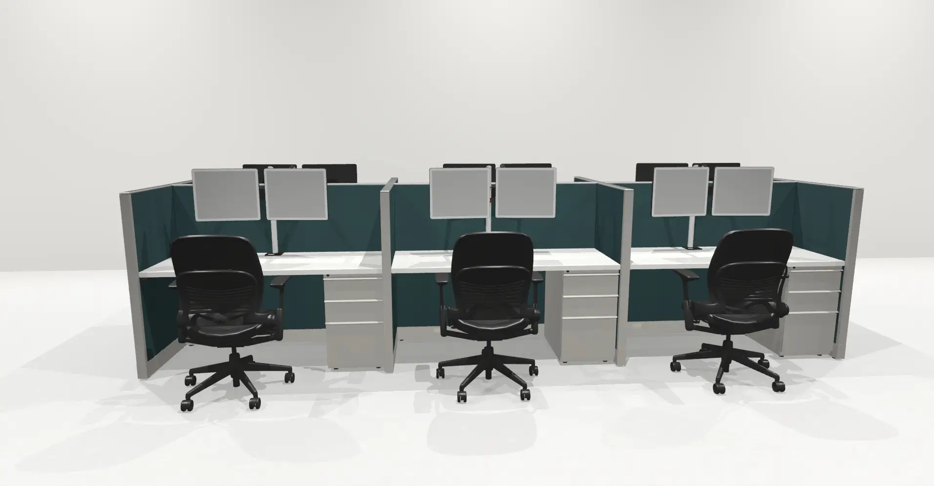 The 5’x2’ footprint is perfect for high-density environments such as call centers, customer service hubs, and technical support teams, delivering a compact yet functional workstation. Optional sit-stand desks and laminate finishes enhance flexibility and comfort.