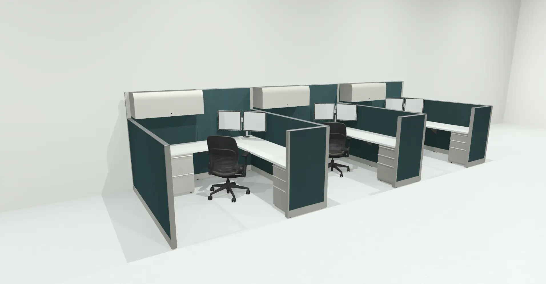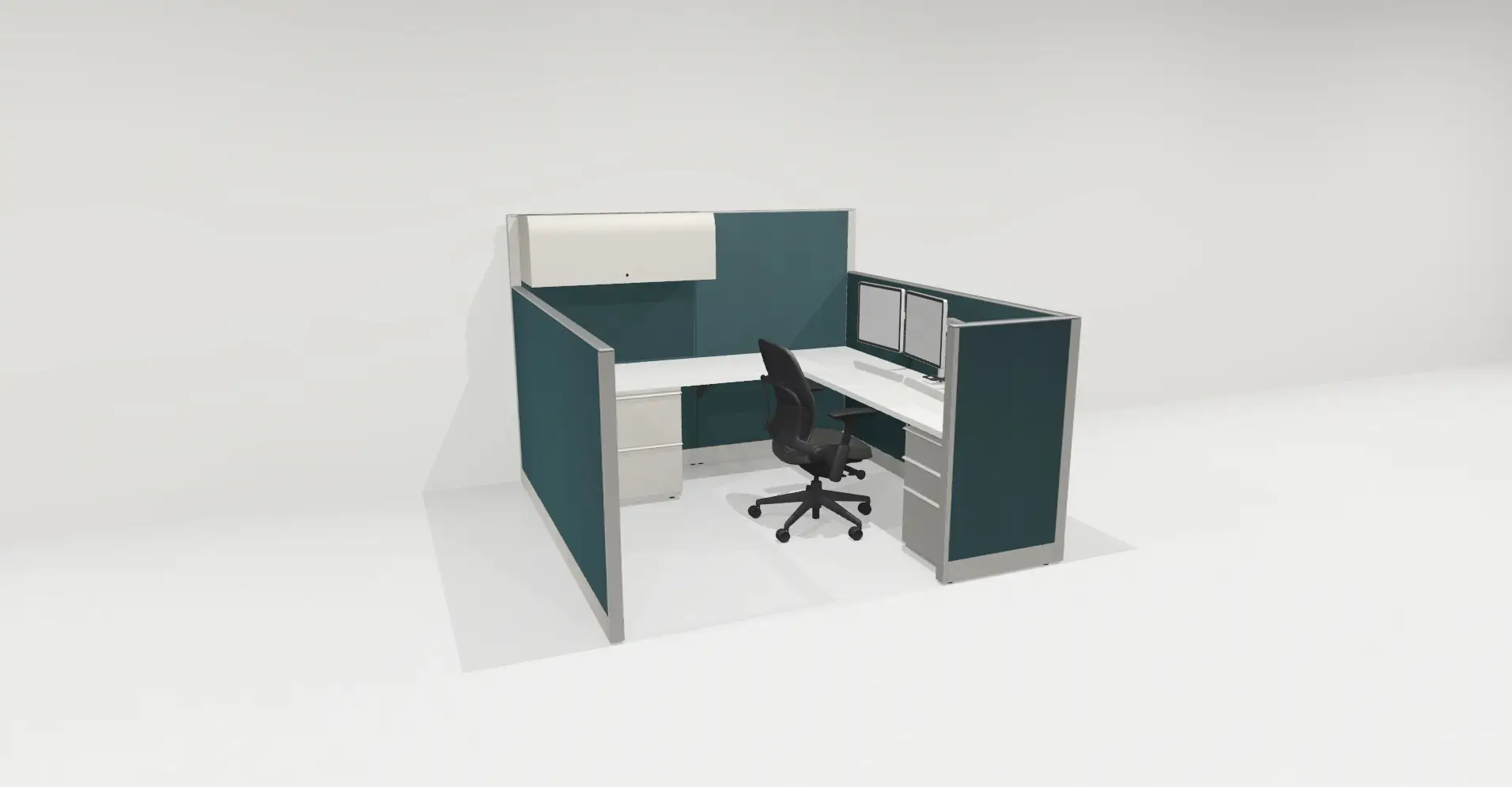 *Renderings are a generic representation of panel, worksurface, and accessory finishes. Clients can select fabric, laminate, and accessories from our wide range of options during workstation configuration.